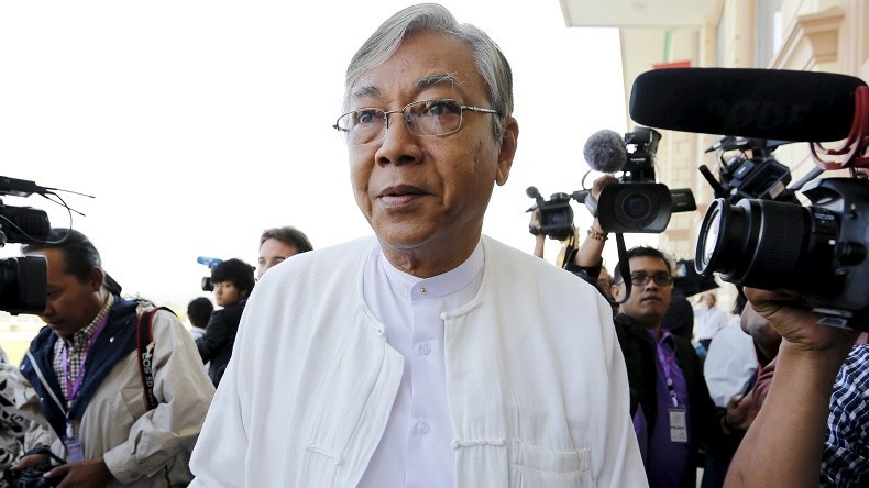 La Ligue nationale pour la démocratie (NLD), qui a largement remporté les législatives en novembre dernier, a proposé le nom de ce proche de la prix Nobel de la paix, qui ne peut accéder à la magistrature suprême, la Constitution héritée de la junte militaire le lui interdisant à cause de la nationalité britannique de ses enfants. Il a été élu, sous les applaudissements, par 360 voix sur 652 députés.