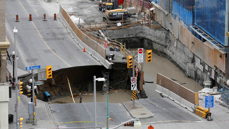 L’accident s’est produit dans la matinée du 8 juin, à 500 mètres du Parlement et des bureaux du Premier ministre. La rue Rideau, l’une des principales artères d’Ottawa, s'est effondrée sur plus de dix mètres de long et sur une profondeur de près de 5 mètres.